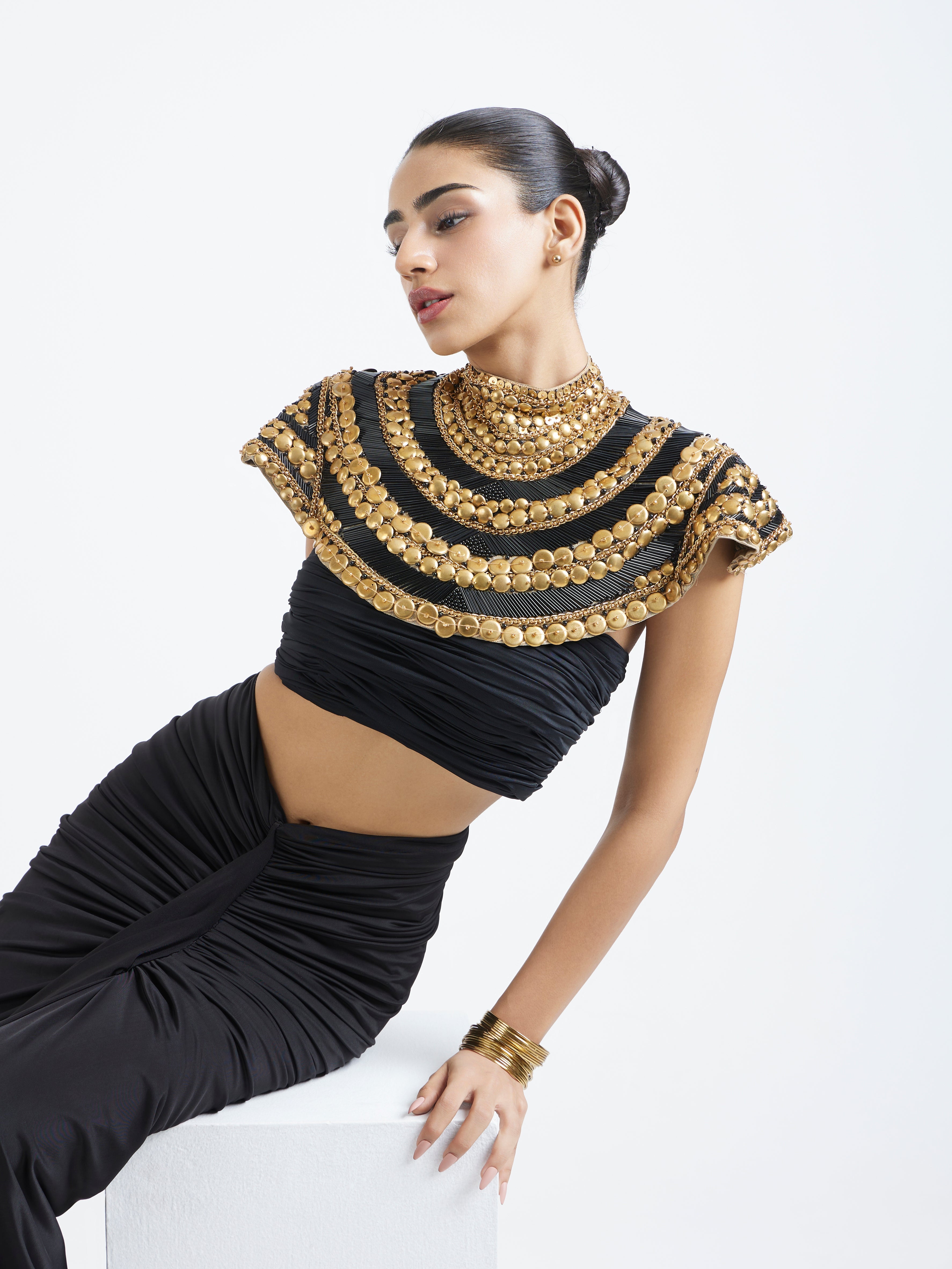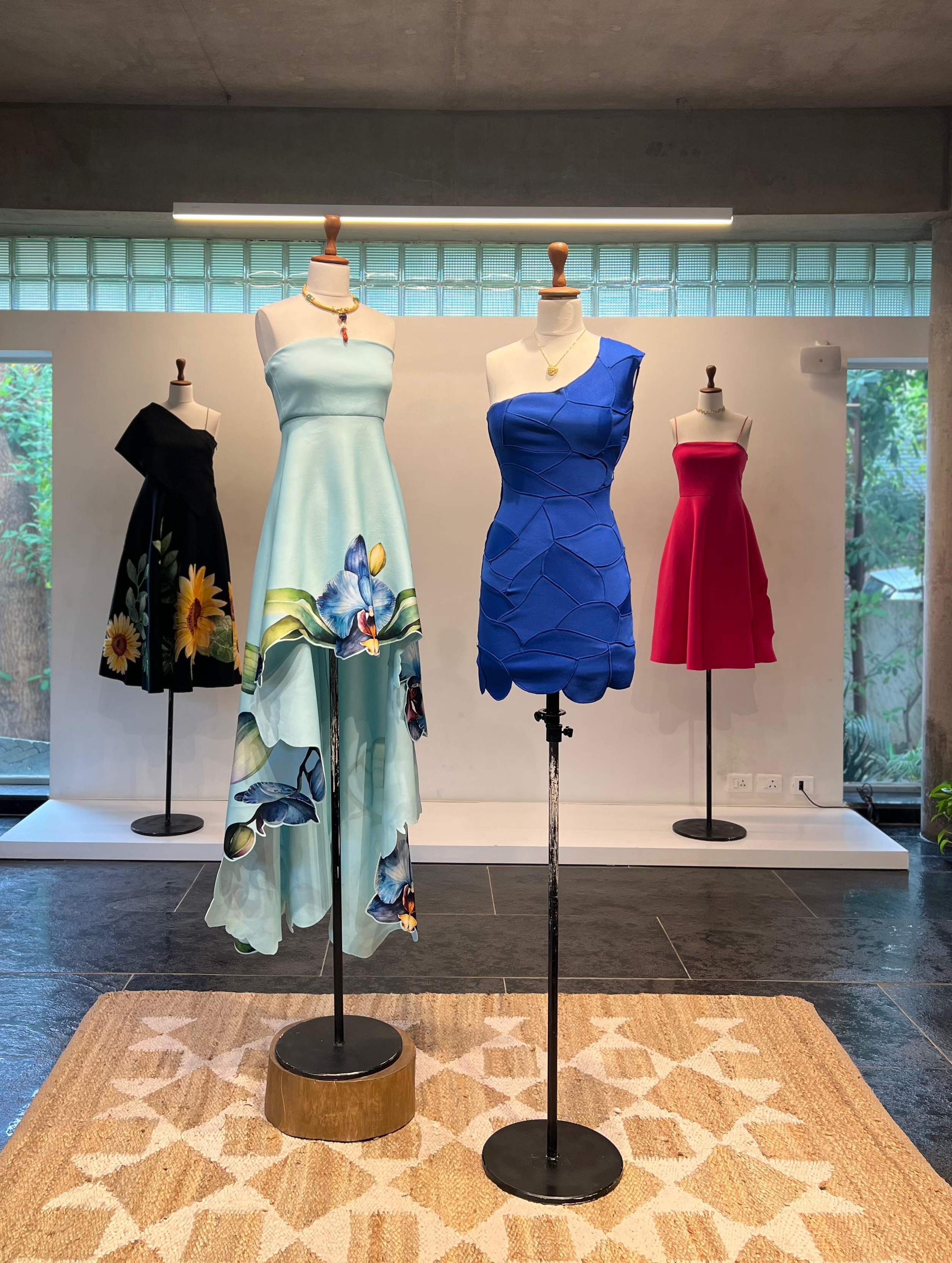 No overproduction, minimal cutting waste, reusable fabrics for appliqué, and garments designed to be re-worn in multiple forms.