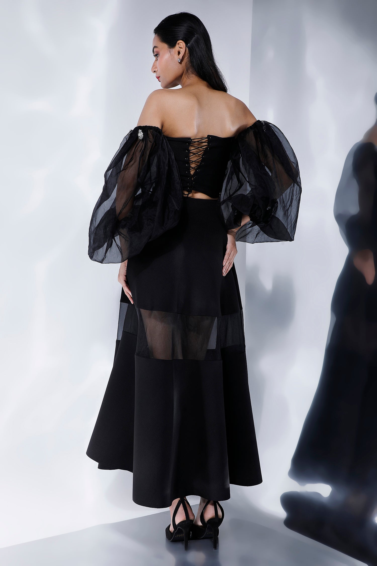 Wear it as is- strapless or with the detachable studded sleeves. The add-on sleeves ensure you get different wears out of this one wardrobe staple which is perfect for night-outs.