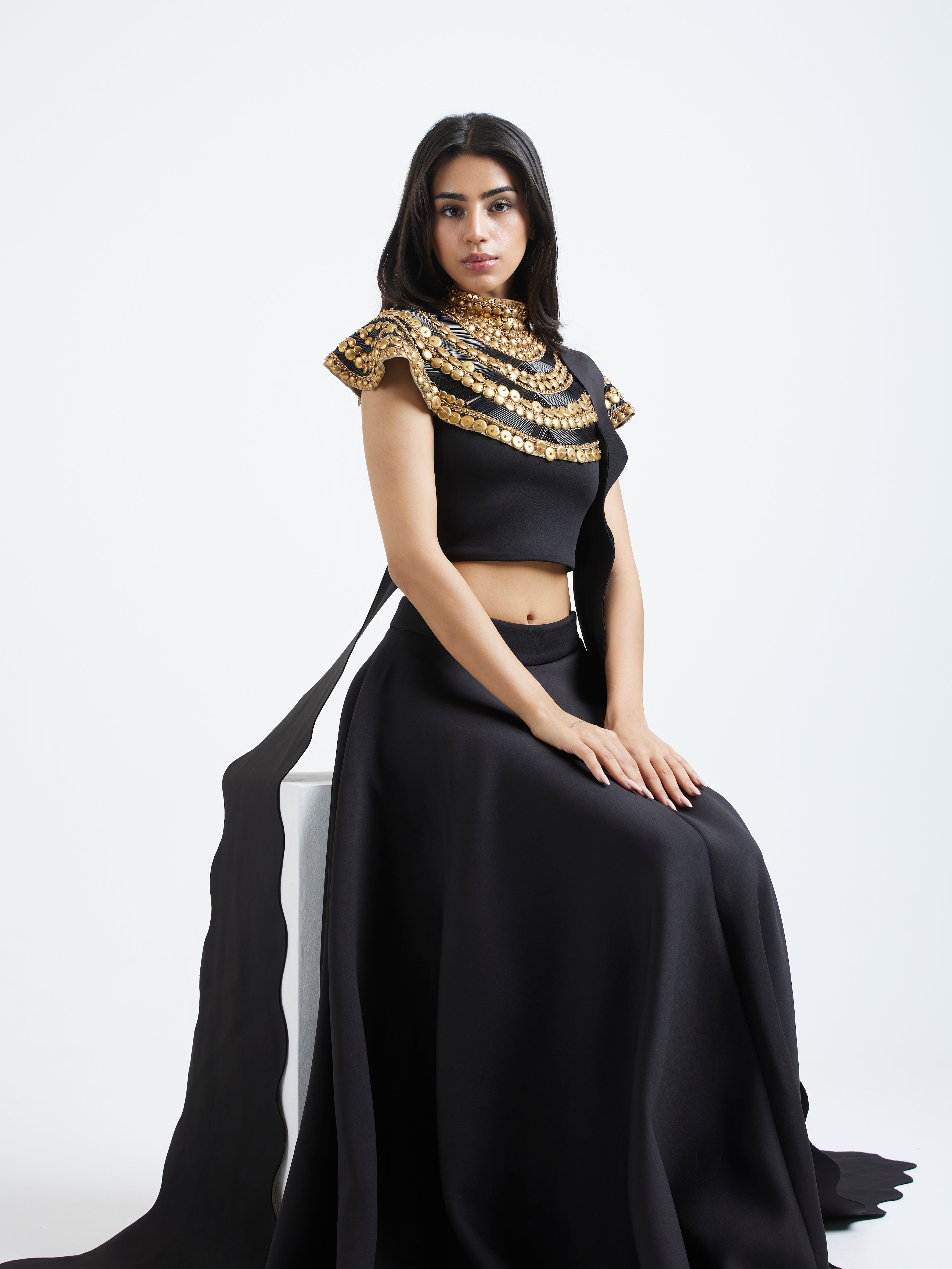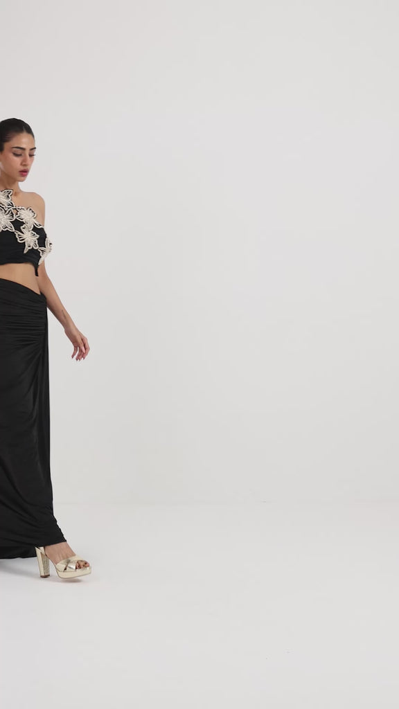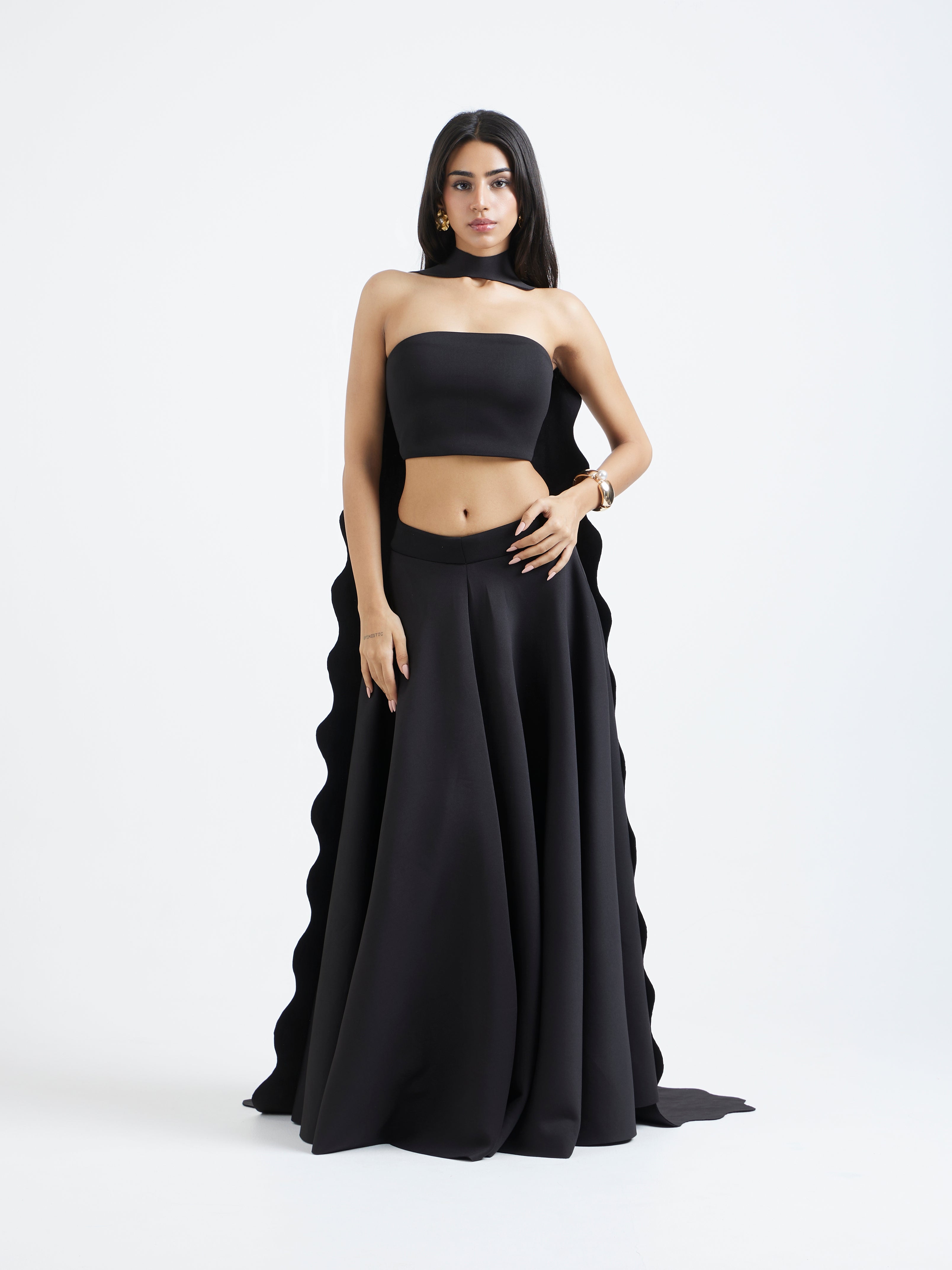Noir Georgia Set of Corset + Skirt + Cutwork Drape