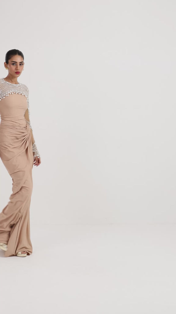 Khushnaz Turner in Blanc Georgia Set + Drape