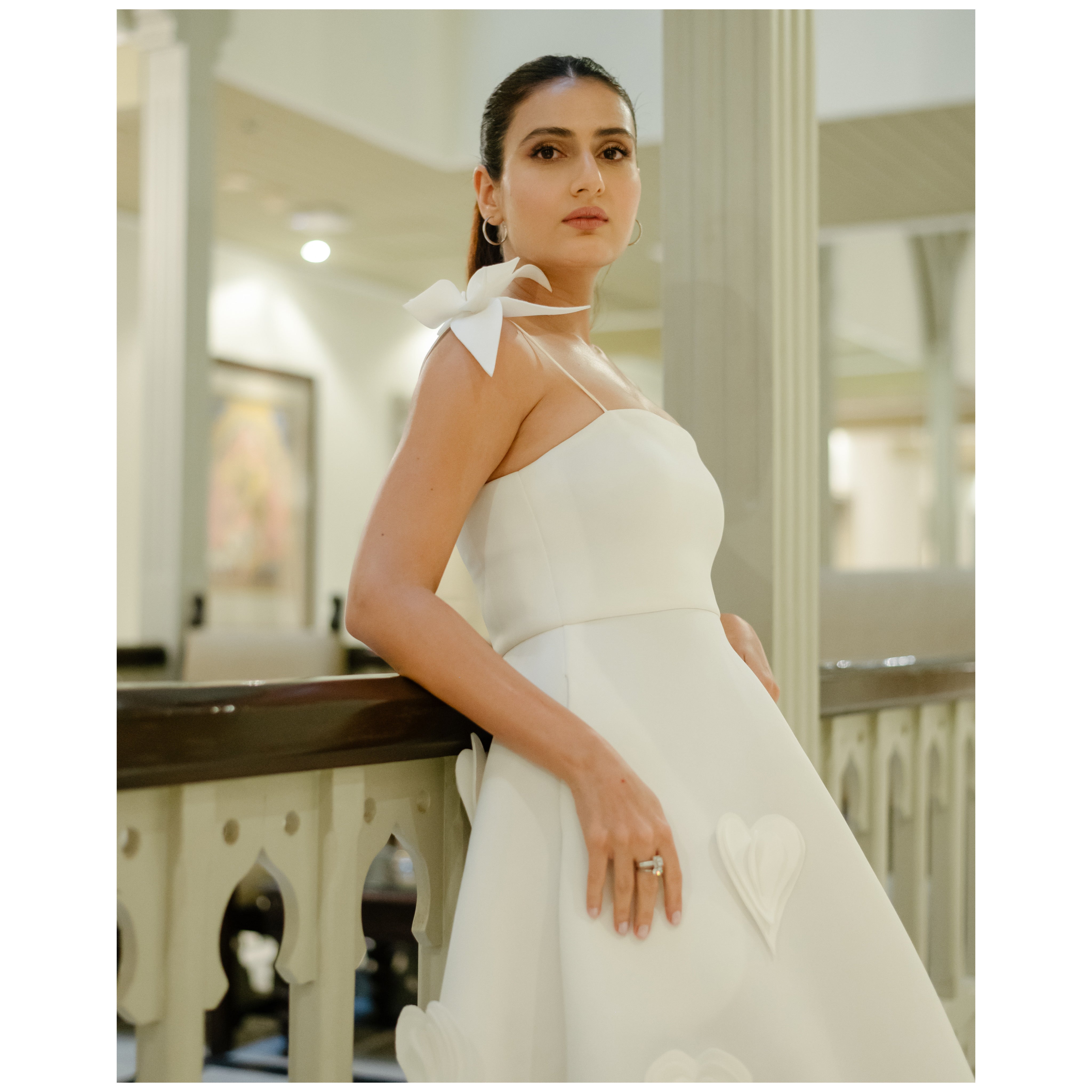 Featuring fit and flare dress, Cassandra with pockets and handmade heart appliqués attached by hand.