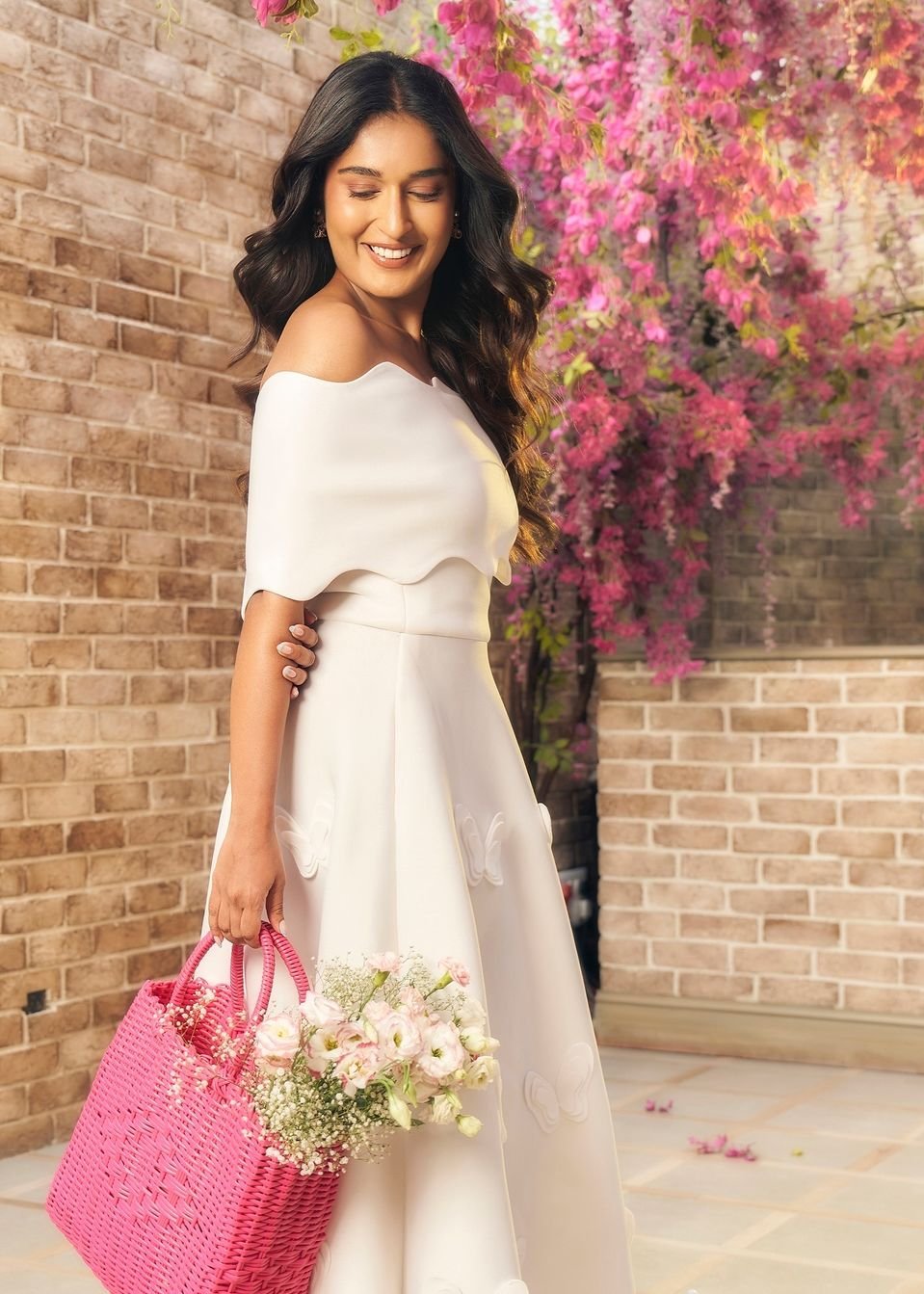 Featuring a strapless dress with pockets and a structured flare. It comes with a detachable wrap which can be worn off the shoulder, over one shoulder and reversed.