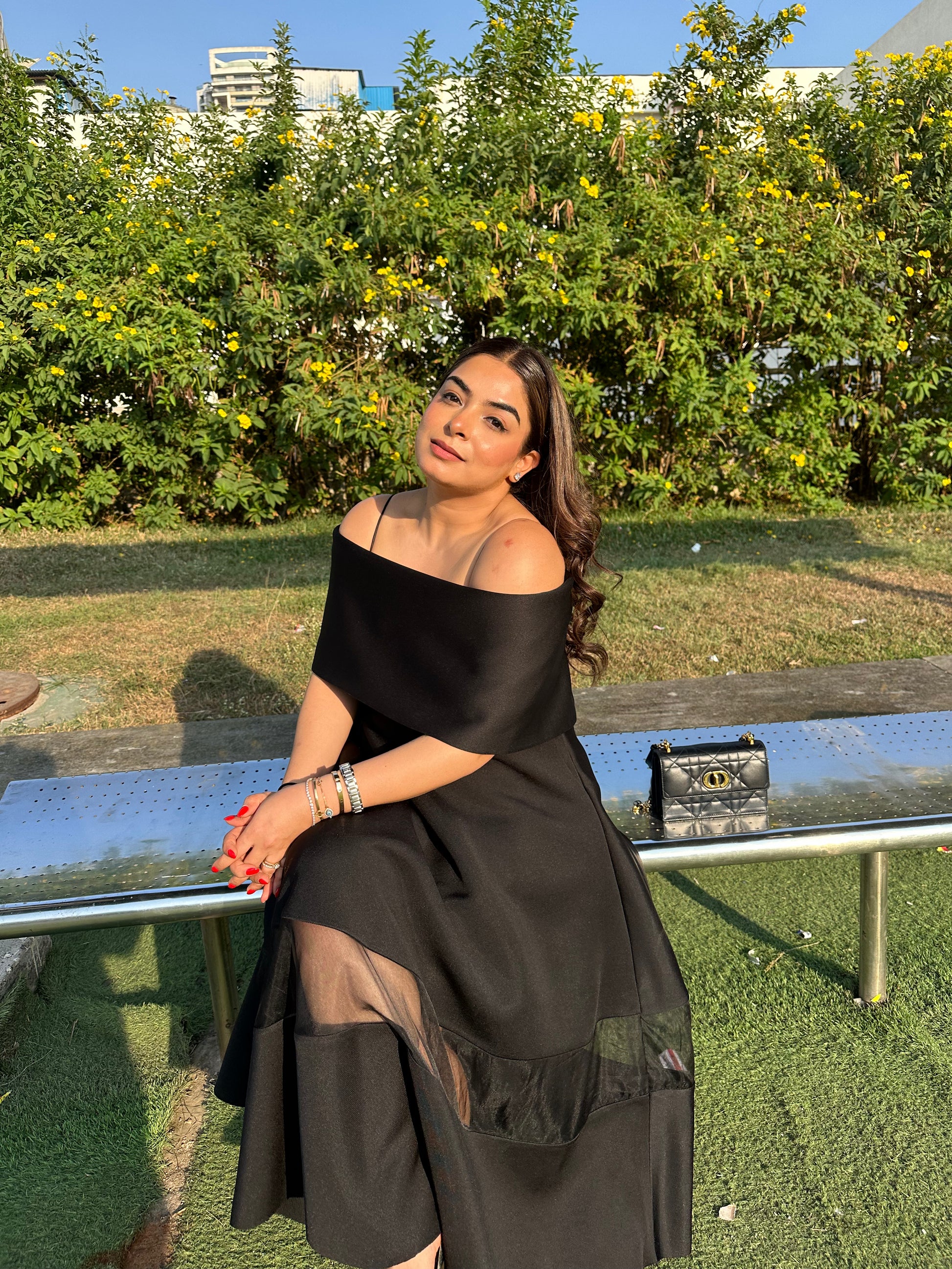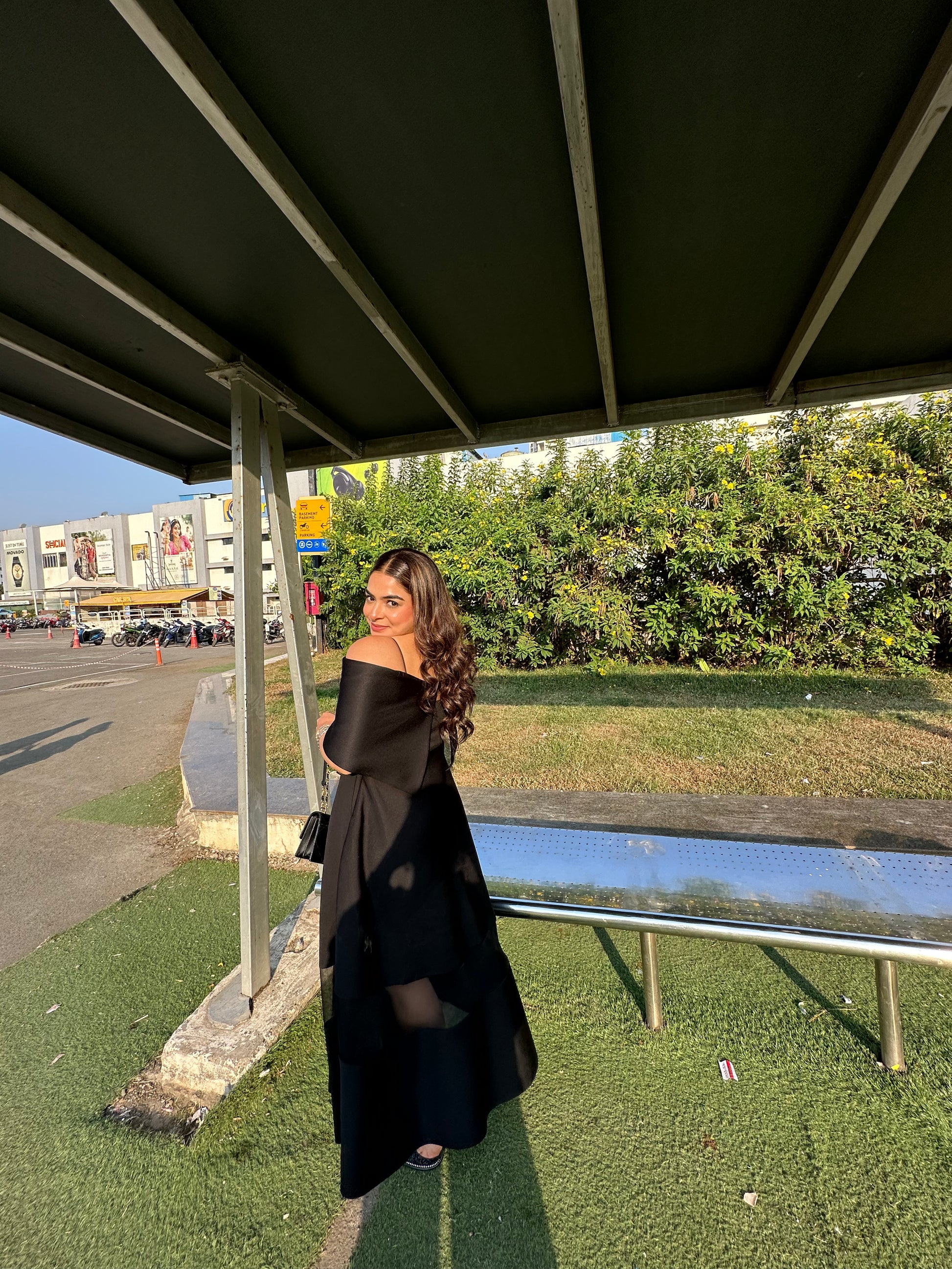 Crafted for both structure and fluidity, it cinches the upper body and flares out gently — flattering across body types while maintaining a clean, sculpted fall.
