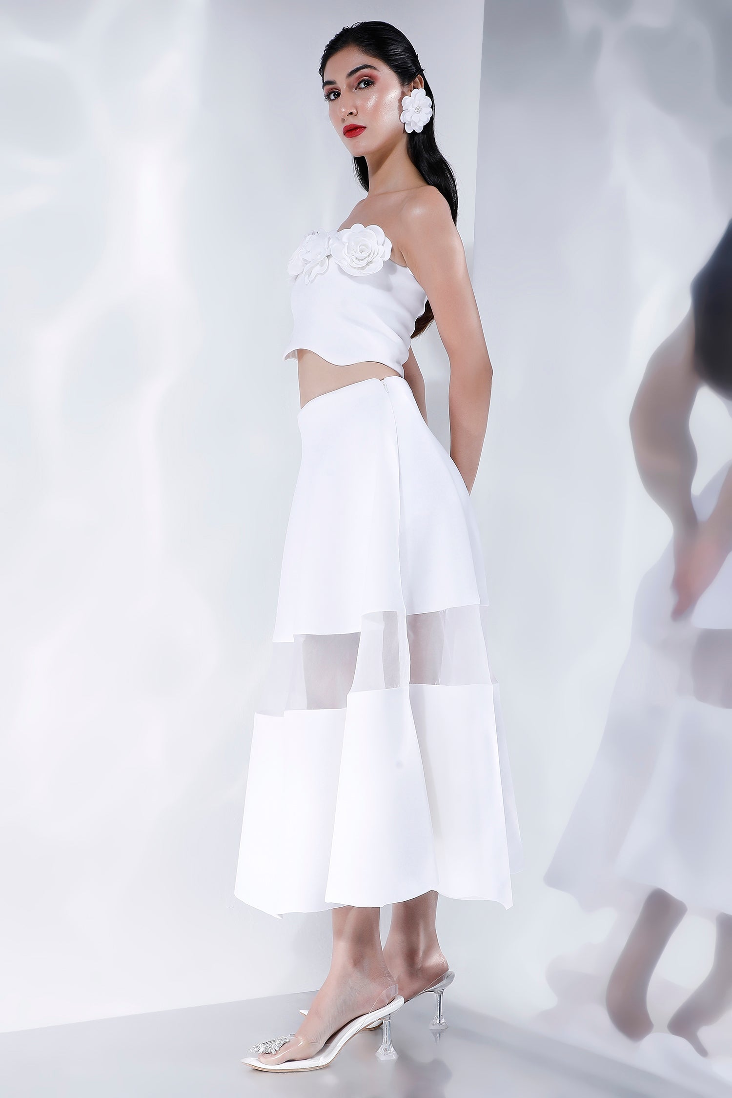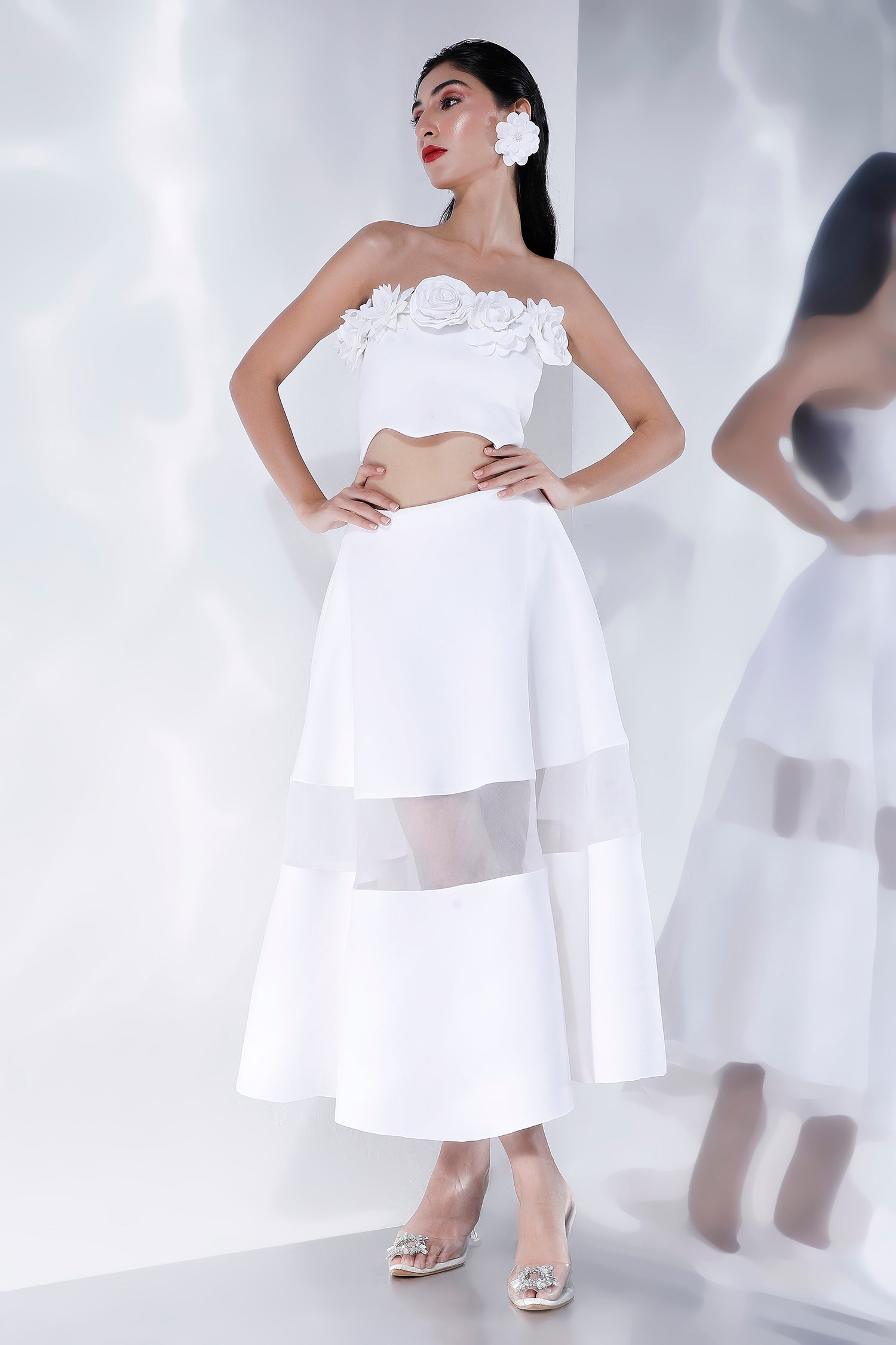 The handmade, three dimensional flowers are attached to the crop. To customise it in your measurements, please share the following-
