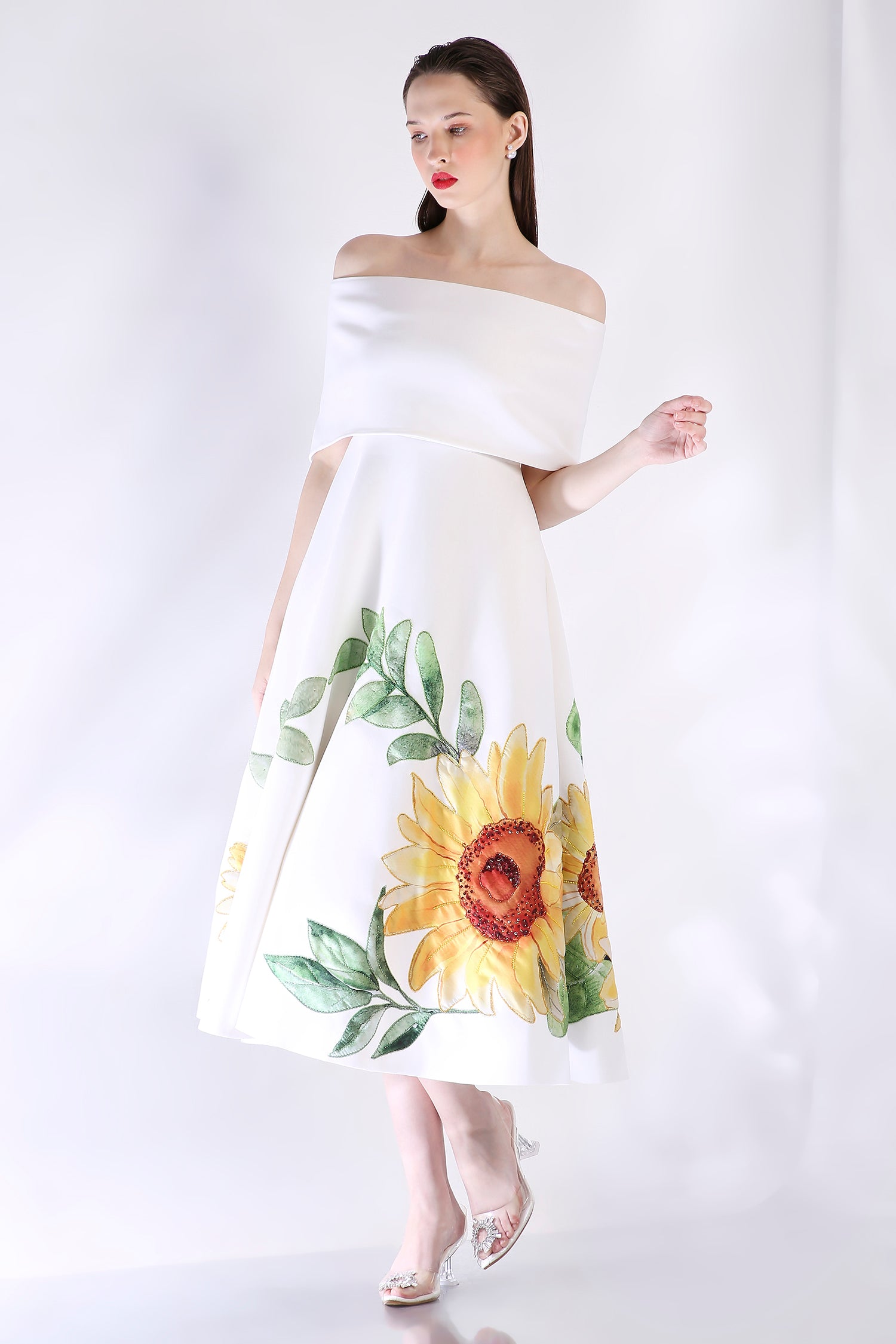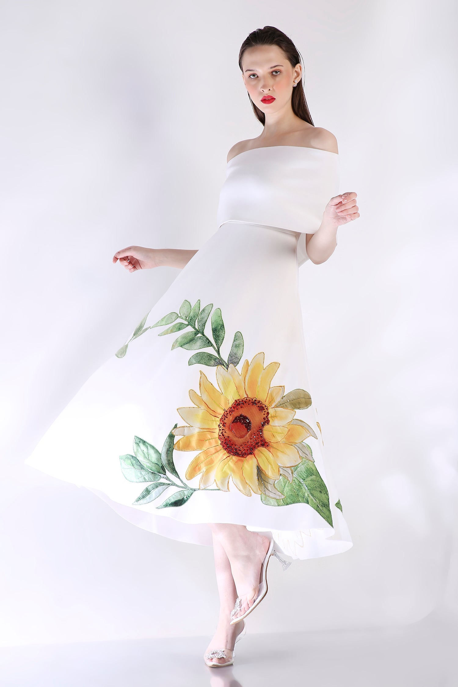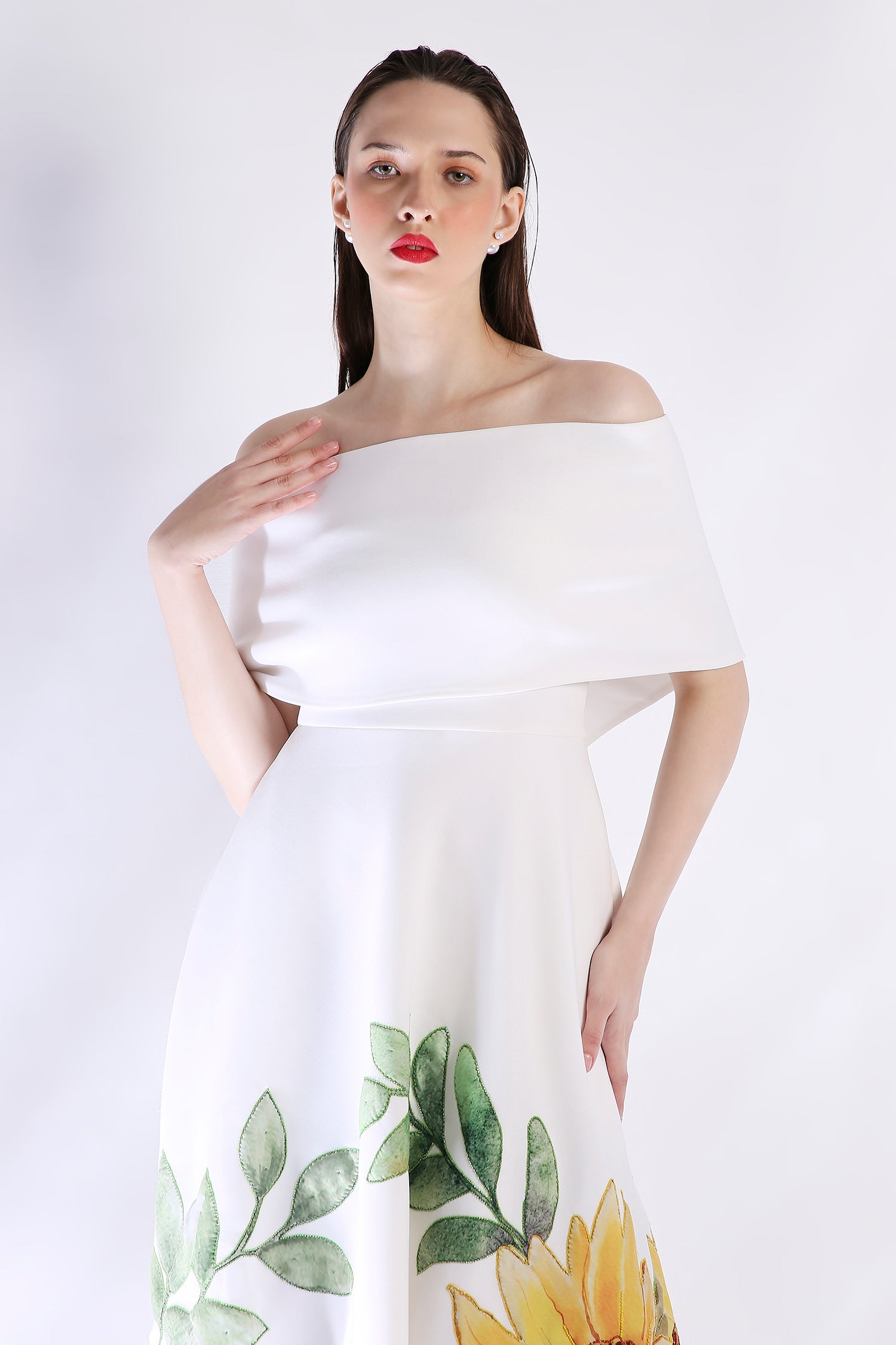 The Olive dress embodies elegance with its intricately hand embroidered floral design, emphasised with beads and sequins. The watercolor motifs paired with appliqué work and hand work elevate the look of this dress.