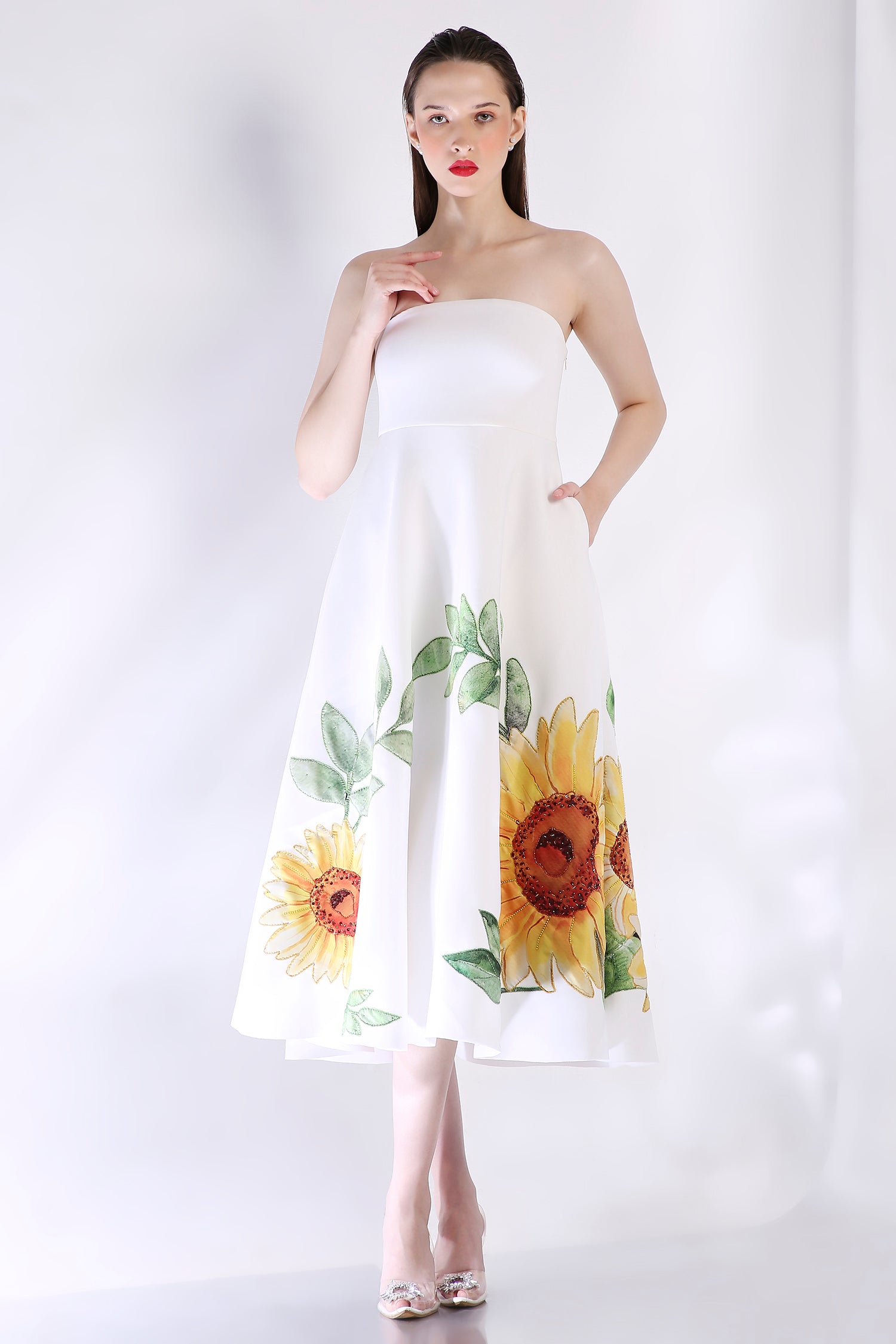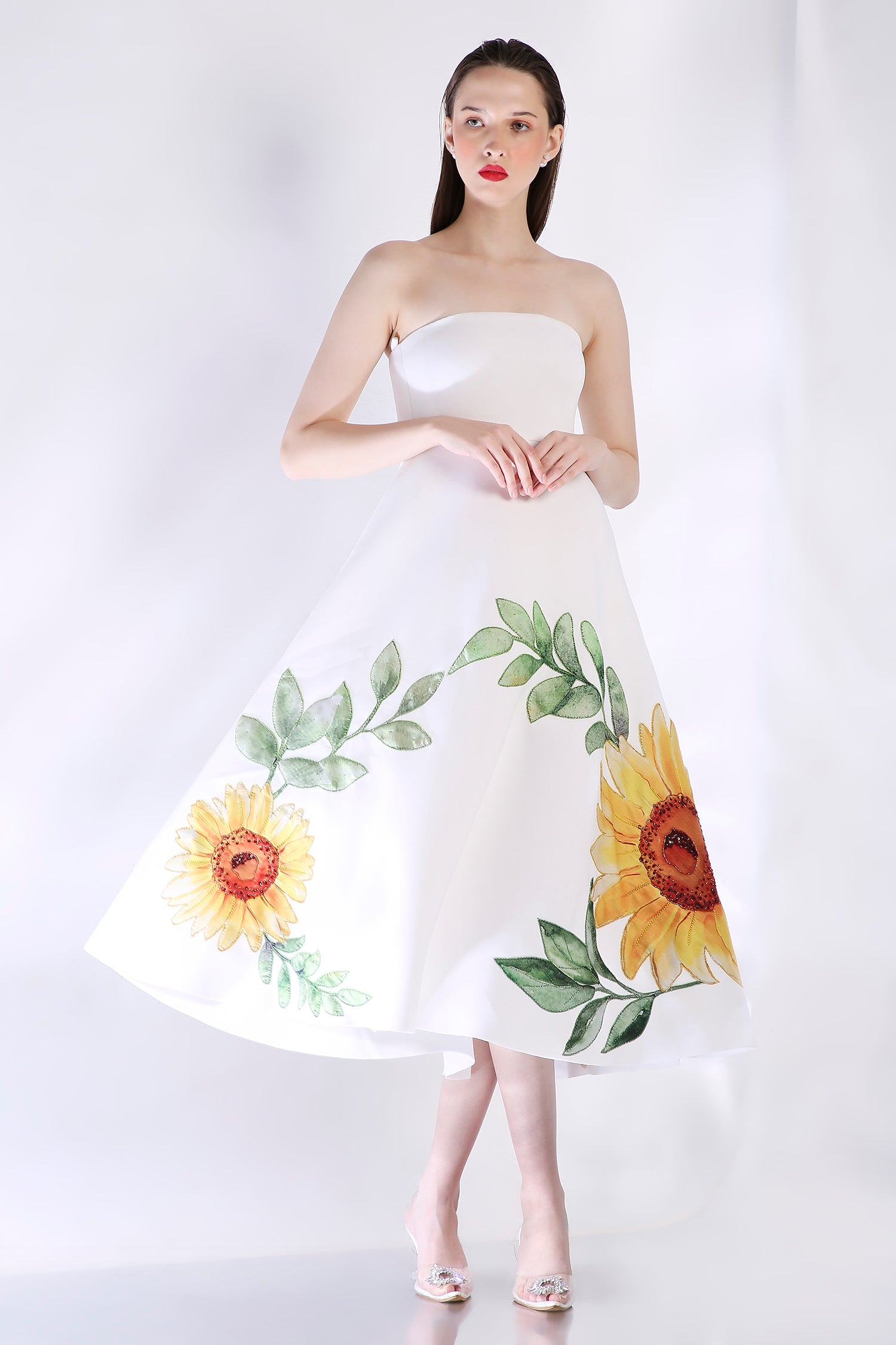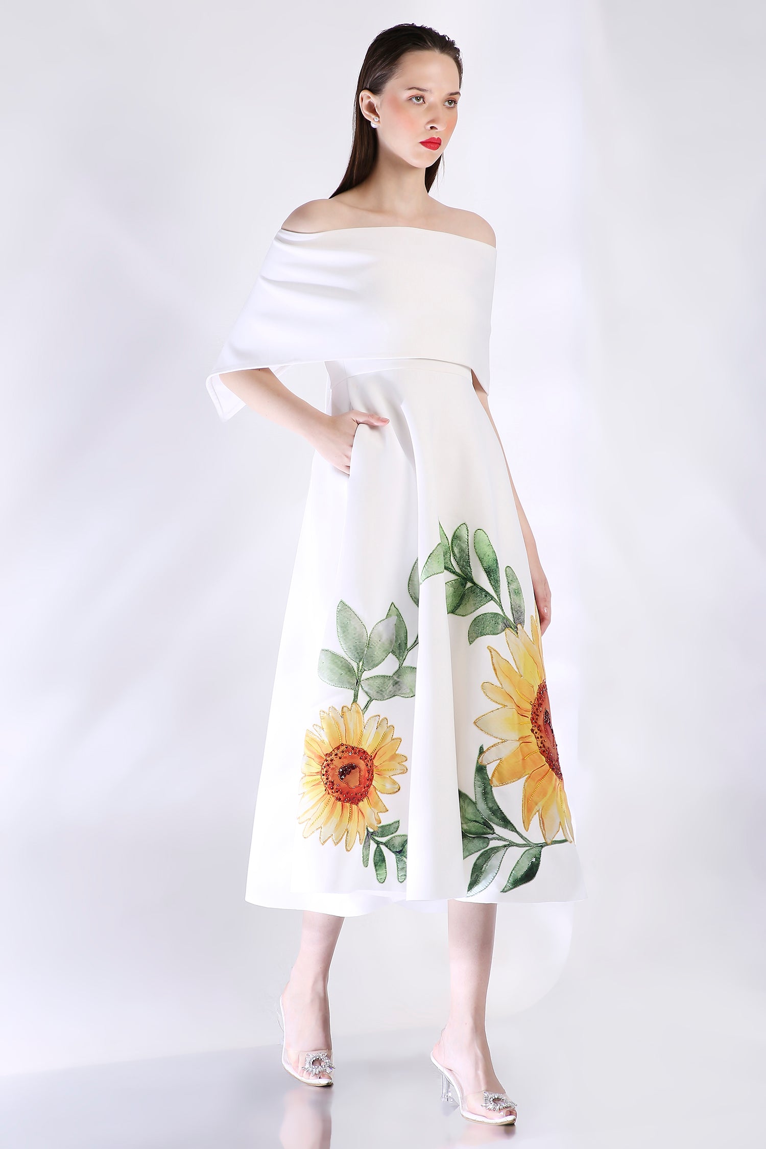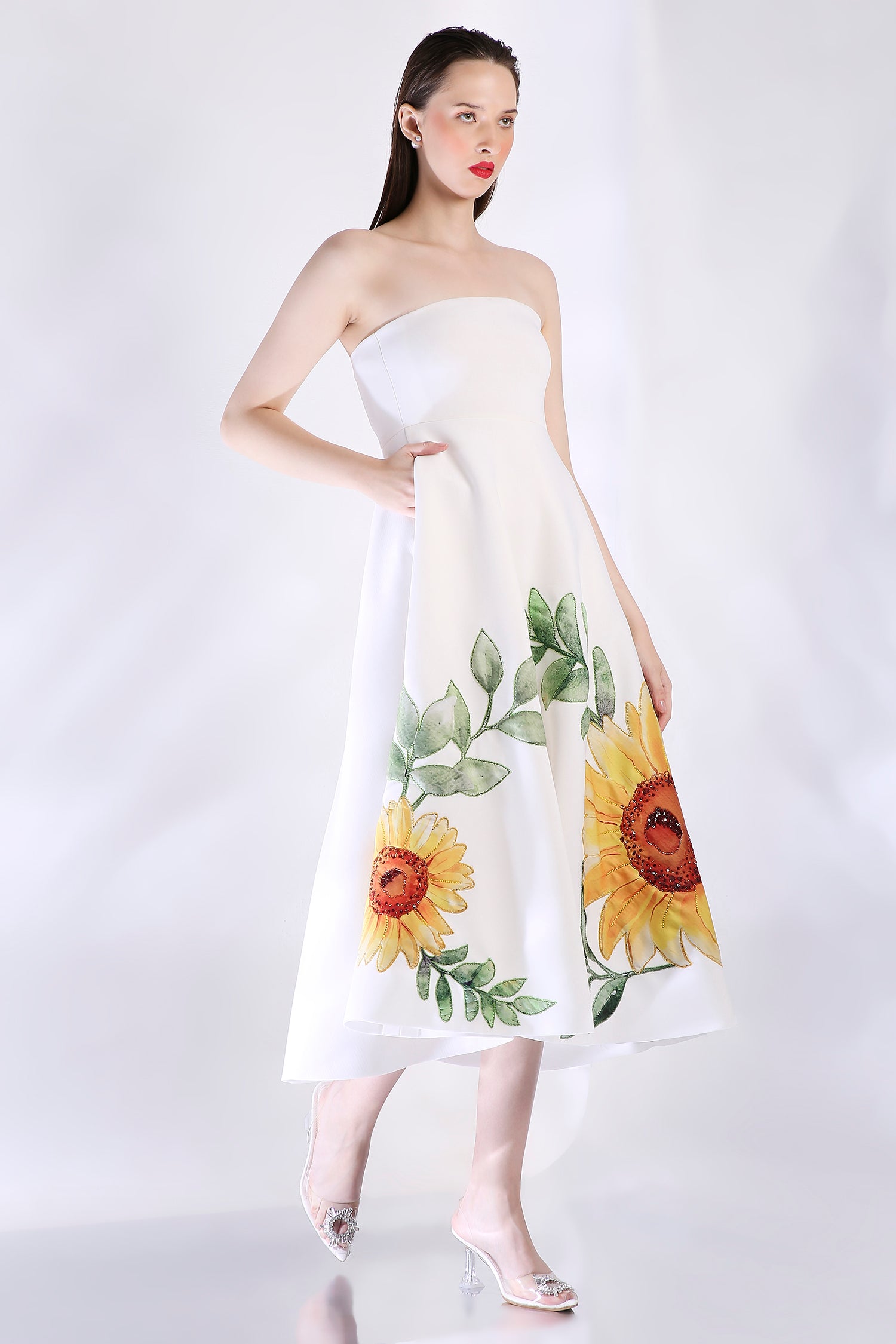 The Olive dress embodies elegance with its intricately hand embroidered floral design, emphasised with beads and sequins. The watercolor motifs paired with appliqué work and hand work elevate the look of this dress.
