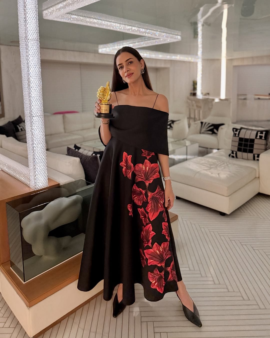 Styling Tip: Keep accessories minimal to let the embellishments shine. Pair with sleek heels and soft waves for a complete look.